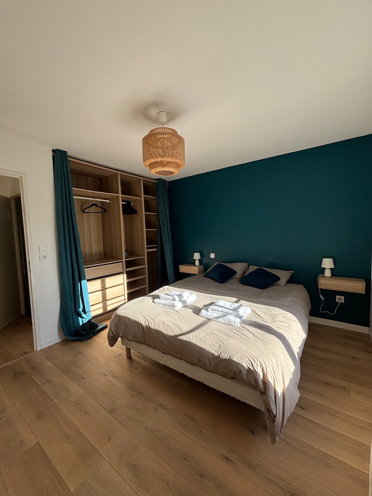 У центру Есина, близу трамвајске станице Д, ова реновирана градска кућа од 100 м2, смештена на крају слепе улице, нуди 2 велике спаваће собе са гардеробом и плакаром, софу на развлачење у дневној соби која може понудити и трећи брачни кревет, опремљену и намештену кухињу (рерна, микроталасна пећница, машина за прање судова, керамичка плоча за кување, фрижидер/замрзивач), вешерај са машином за прање и сушење веша, машину за пеглање.Kuća je klimatizovana, ima internet i TV. Besplatan parking u blizini.