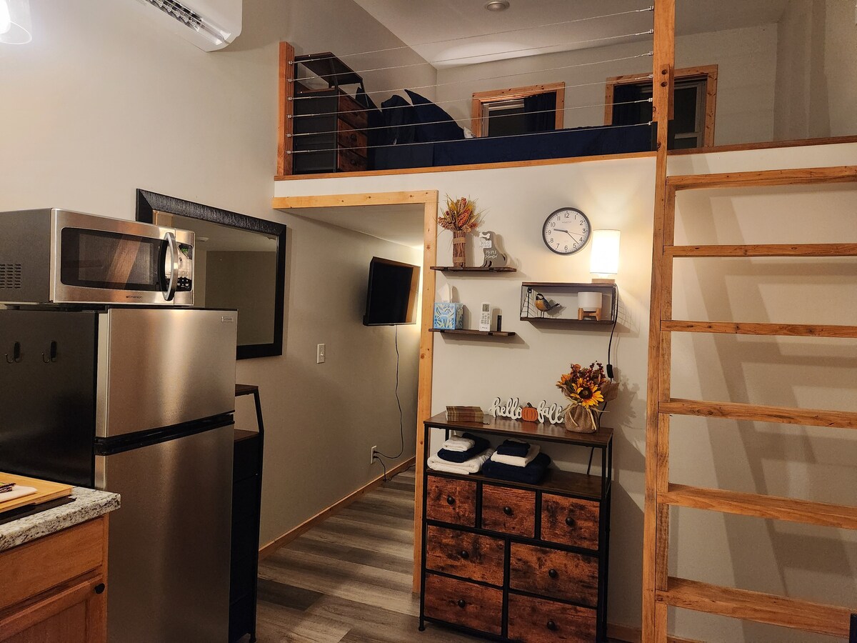 Samo 10 minuta vožnje od rute 77, Fort Džekson i centar KOLE samo 20-30 minuta vožnje. Studio se nalazi u prelijepoj prigradskoj zajednici jezera prikladnoj za porodice u Kolumbiji, sa prodavnicama i benzinskim pumpama u roku od nekoliko minuta. Uživajte u noći opremljenoj filmskim ekranom i projektorom, a zatim završite noć tako što ćete topiti svoje brige u nevjerovatno umirujući bračni krevet od memorijske pjene. Pustite našu sveobuhvatnu mašinu za pranje/sušenje veša da obavi posao za vas i probudite se uz završeni ciklus i zvukove domaćih ptica SC-a.