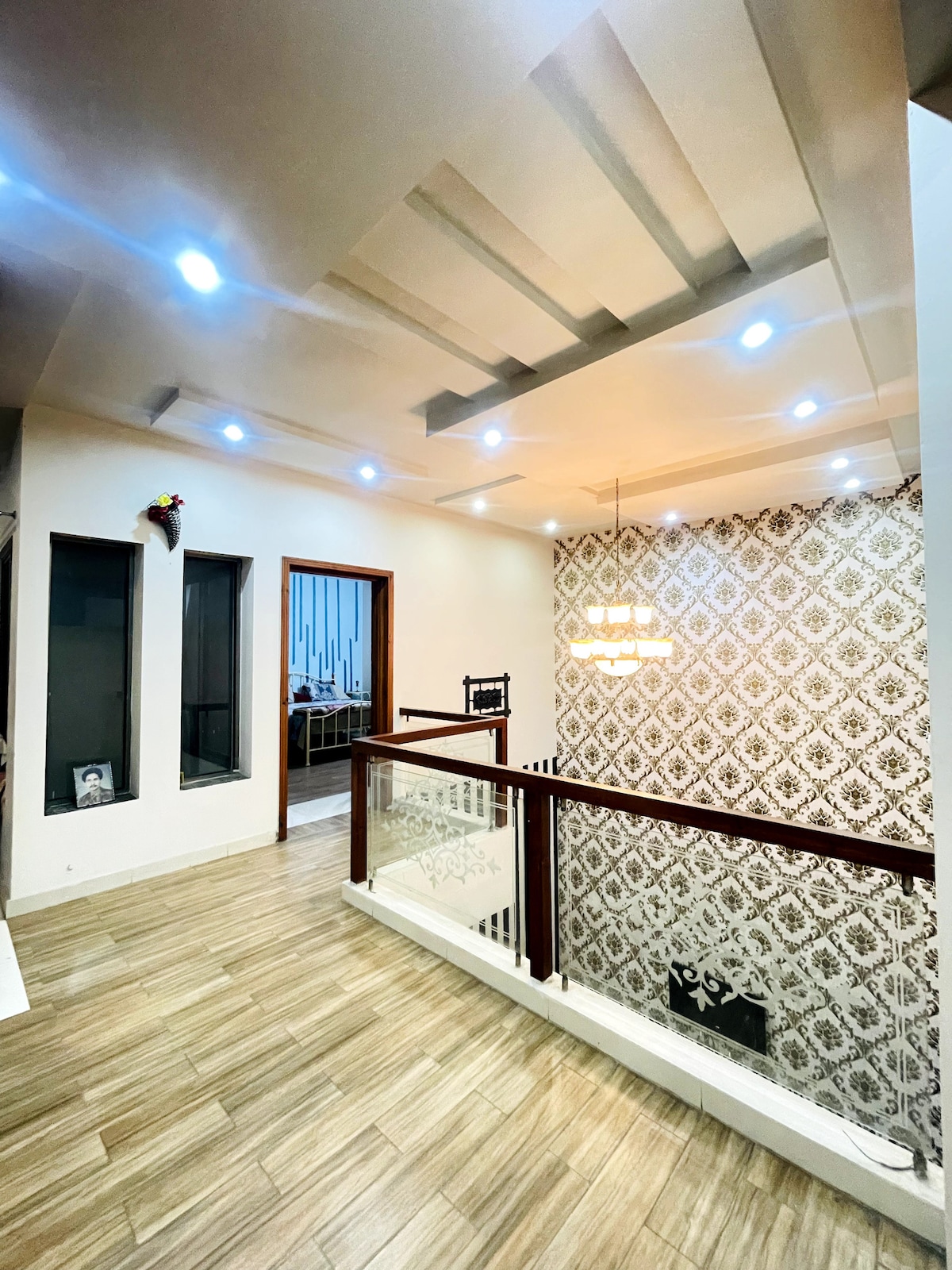 Dobro došli u naš mirni dom u Faisalabadu, koji se nalazi samo 2 kilometra od puta Kanal. Idealan za putnike, naš dom spaja uzbuđenje grada sa spokojem mirnog utočišta. Tri spavaće sobe:Svaka spavaća soba je prijatno utočište, što garantuje mirnu noć. Prostrani TV salon: Salon dvostruke visine, savršen za opuštanje ili zabavu. Luksuzna kupatila! Trpezarija i soba za crtanje: elegantan prostor za obroke i okupljanja. Potpuno opremljena kuhinja: zadovoljava sve vaše kulinarske potrebe.
