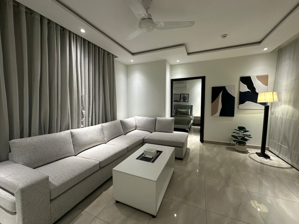 Elegantna garsonjera sa samostalnom prijavom u blizini ulice MM Alam u srcu Gulberga. Ovaj miran i siguran prostor idealan je za samostalne putnike, poslovne posjetioce, parove i male porodice. Uživajte u brzom Wi-Fi mreži, pametnom TV-u, rezervnom napajanju, besplatnom parkingu, grejanju i jednostavnom samostalnom dolasku. Dizajniran za udobnost i privatnost, to je opuštajući smještaj nakon napornog dana. Okružen kafićima, restoranima, trgovinama i glavnim gradskim rutama, savršen je za kratke ili duže boravke.