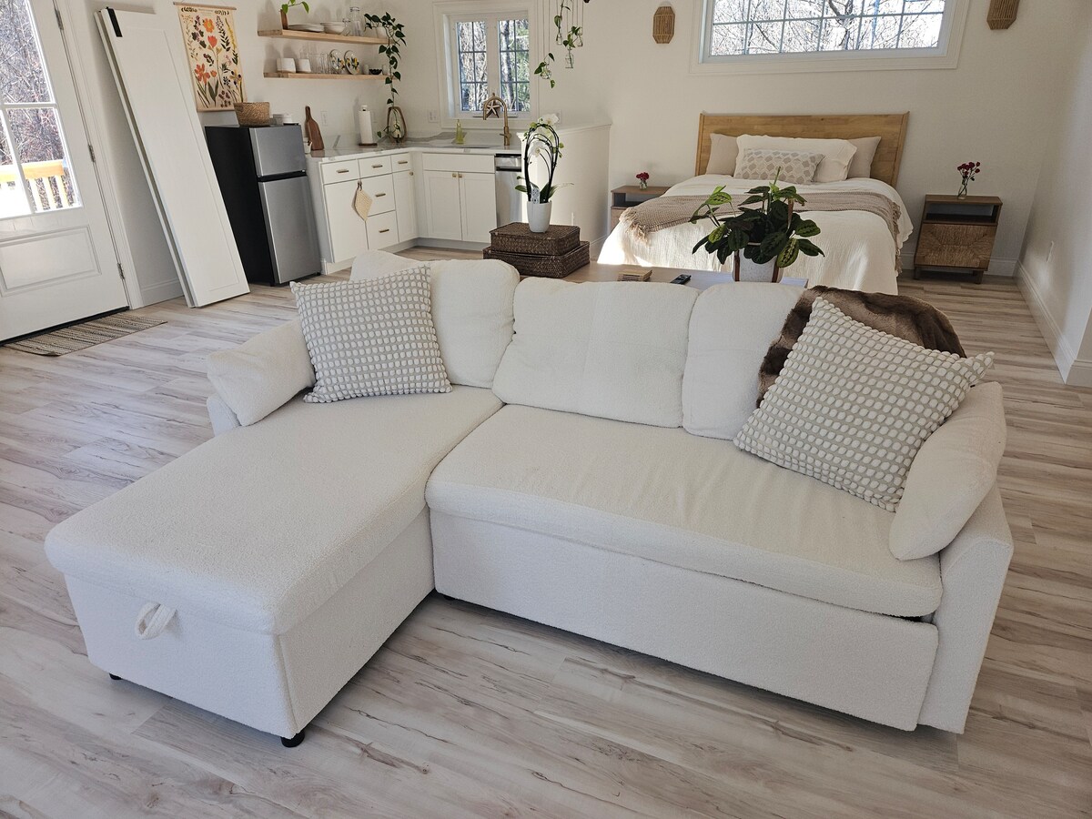 Pobijedite ljetnje vrućine privatnim bazenom na osami u zemlji. 7 minuta od centra Portlanda. Autobuska linija do Stare luke preko ulice. Parking na mom prilazu Šetnja do ostrva Makvort iz apartmana. Pješčane male plaže za pristup vodi/sunčanju . Kasko Bej okružuje gradsku četvrt za šetnju/vožnju biciklom. Obezbijeđeno je pecivo, svježa kuvana kafa. Kurig u apartmanu. Apartman može da primi 2 odrasle osobe. Bez djece. Zadnje dvorište i bazen su dostupni samo za 2 gosta u apartmanu