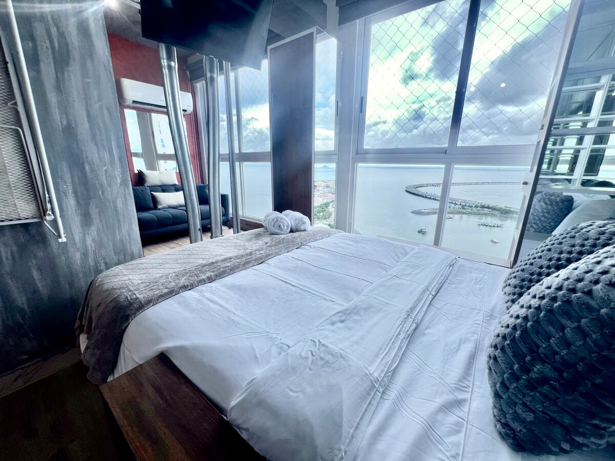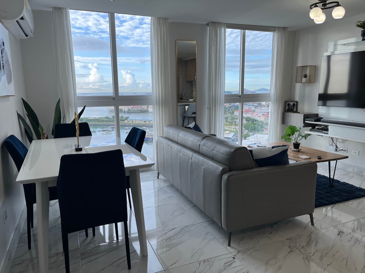 Prelijep i dobro opremljen prostrani kondominijum sa 1 spavaćom sobom, velikim kupatilom i potpuno opremljenom kuhinjom. Prekrasan pogled na okean na Casco Viejo, centar Skyline-a i bujna brda Ankon kao pozadina. Uživajte u pogledu na kanal, sa brodovima, sa zajedničkih krovnih terasa. Njegova blizina sa Causeway-om, Casco Viejo-om i centrom grada čini ga savršenim „pied à terre”.