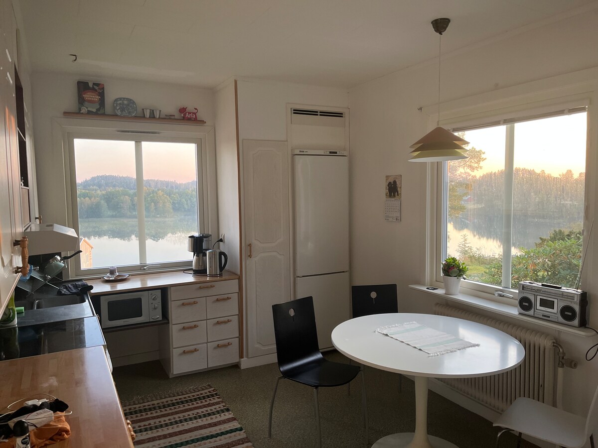 Dobro došli u našu idiličnu seosku kuću sa zadivljujućim pogledom na jezero – samo 50 metara od male plaže! Ovdje živite neometano (samo jedan komšija) okruženi šumom i livadama, savršenim za one koji traže mir i blizinu prirode. Uživajte u tišini, plivajte u jezeru, pješačite šumom, berite bobice i pečurke. Ili zašto ne biste otišli na veslanje ili izlet brodom u Baltičko more/Ellenösjön– canoes/eka su dostupni za pozajmljivanje. U obližnjem području ima i mnogo divljih životinja kao što su losovi, jeleni, jeleni i divlje svinje.