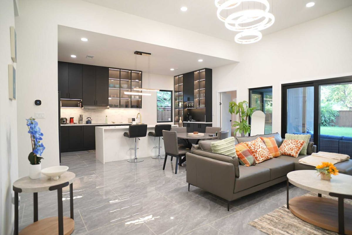 Dobro došli u naš dom! Gdje se izuzetan elegantan savremeni dizajn susreće sa izuzetnom funkcijom u ovom prostranom modernom domu. •ODLIČNA LOKACIJA - 12 minuta od aerodroma sa brzim i jednostavnim pristupom svim glavnim autoputevima. Kratka vožnja od 15-20 minuta od centra Dalasa i nalazi se u blizini više restorana i barova! •Potpuno opremljena kuhinja i kafić •Plišani dušeci i jastuci •Ugrađeni zvučnici u cijelom prostoru •Wi-Fi i pametni televizori u 5 različitih delova smještaja •Unutrašnji i spoljašnji kamin