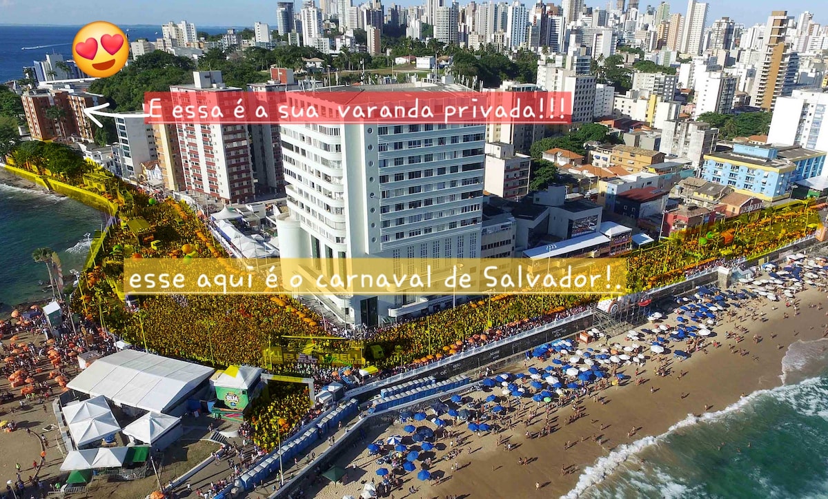 🎉 Viva o Carnaval de dentro do circuito! Durante a folia, a garagem do prédio se transforma em um camarote VIP, exclusivo para moradores e hóspedes. O prédio fica no coração do circuito Barra-Ondina. Assista aos maiores trios elétricos com segurança, conforto e vista privilegiada! Suba para descansar ou usar o banheiro com total privacidade e retorne à festa em segundos. A localização estratégica permite curtir o Farol da Barra e a Praia em poucos passos. Viva a energia de Salvador!