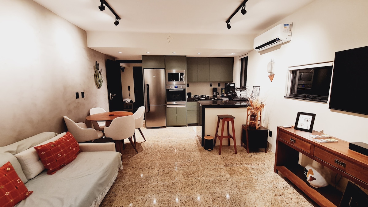 Potpuno novi stan na karnevalskom krugu salvadora. Proleće, pogled na prednje more do Praia da Barra. Vrlo malo metara od svetionika Barra. Stan koji je ukrasio arhitekta, podeljen je u spavaću sobu i dnevnu sobu. Bračni krevet i kauč na razvlačenje, zavese za zamračivanje, kuhinja i privatna garaža. Wi-Fi , TV u spavaćoj sobi i dnevnoj sobi. Krov sa panoramskim pogledom na more, bazenom, teretanom, roštiljem, sobom za masažu. Zabranjeno je pušenje, a bazen nije hospitalizovan svakog ponedeljka. Dobro došli @beiramarssa.