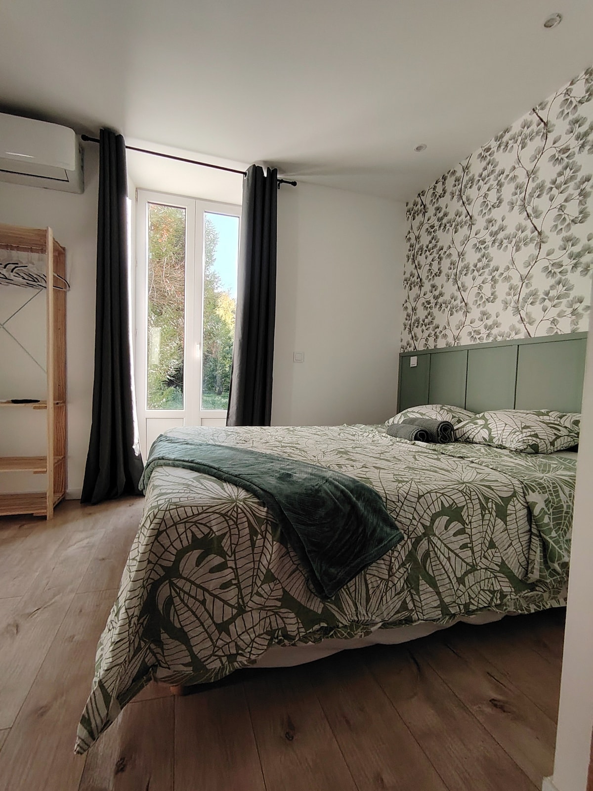 Stan u prizemlju, klimatizovan, potpuno nezavisan (samostalna prijava) i uključuje veliku spavaću sobu: bračni krevet sa TV-om od 40", kupatilo sa WC šoljom, kuhinju otvoren za dnevni boravak sa sofom na razvlačenje 1,60 m kvalitetne memorijske pjene. 1 prozor s pogledom na spoljašnjost. Objekat ima 2 parking mjesta u zatvorenom dvorištu (video). Objekat ima jezerce gdje možete da prošetate i vidite.🦆🐿️ Obezbjeđujemo posteljinu i peškire