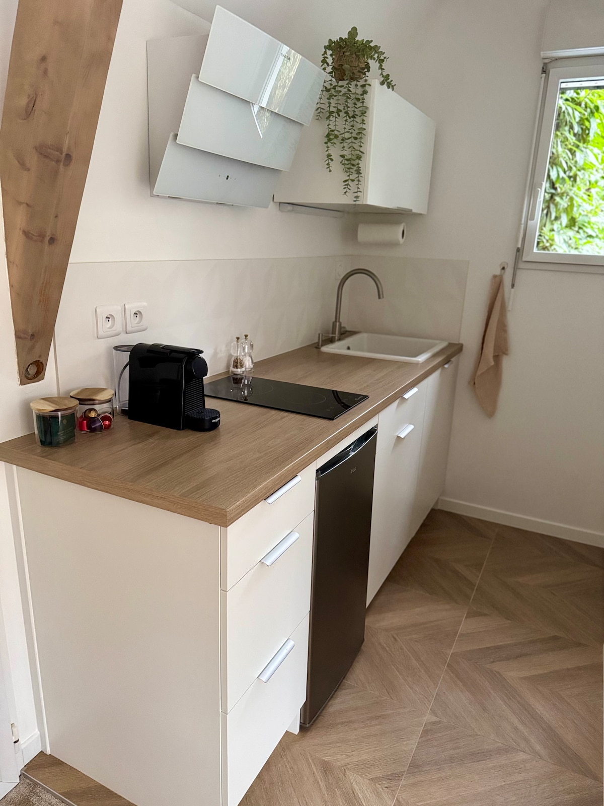 Smješten u centru grada u mirnoj slepoj ulici, ovaj apartman od 25 m² s toplom atmosferom objedinjuje prirodne materijale i umirujući dizajn. Uživajte u udobnom prostoru za velnes-odmor, sa privatnim i pristupačnim spa centrom koji radi non-stop, svim modernim pogodnostima i idealnom lokacijom za pešačko istraživanje grada.