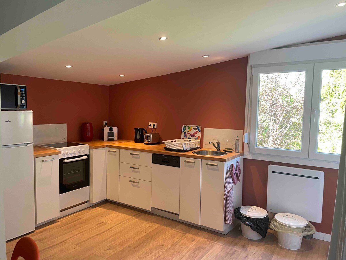 Suite Premium avec Spa Privatif Nous avons le plaisir de vous accueillir dans ce studio indépendant, entièrement de plain-pied, conçu pour vous offrir confort et tranquillité. Il dispose d’une entrée ainsi que d’une cour privatives, vous garantissant une totale indépendance durant votre séjour Jacuzzi multijets avec TV Chambre cosy avec lit confortable & télévision Cuisine équipée avec espace repas Climatisation réversible Parking gratuit Check-in autonome