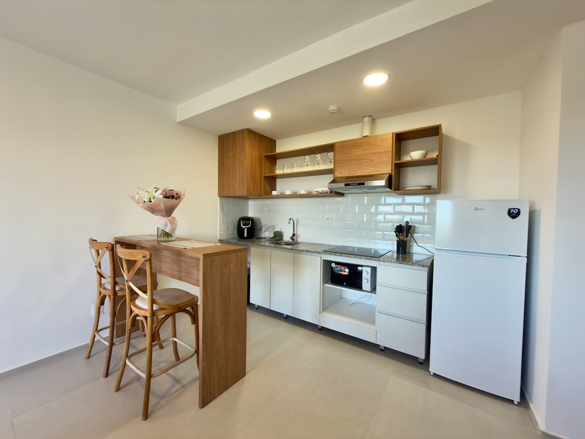 Udoban apartman, idealan za nepušače, sa klima uređajem, jednim spavaćim sobom, jednim kupatilom, dnevnim boravkom otvorenog tipa sa kuhinjom i trpezarijom. Ima 50-inčni Smart TV i brzi internet (modem je u dnevnoj sobi). Privatni balkon; zajednička krovna terasa. Objekat je udaljen 15 minuta od Shopping del Sol i Paseo La Galería, i 10 minuta od Pinedo Shoppinga. 1 blok od Laguna Grande Ave i 3, od Mcal. Lopez Ave. Ova odlična lokacija nudi jednostavan pristup javnom prevozu.