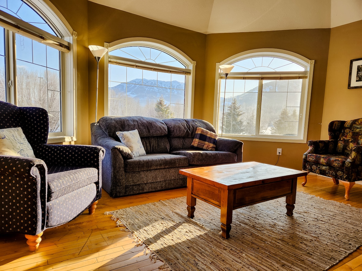 Predivan moderan kondominijum sa 2 spavaće sobe i 2 kupatila, sa pogledom na skijaško brdo i privatnim balkonom. Idealno se nalazi samo 5 minuta od podnožja skijaškog brda i kratke šetnje do grada. Silver Rock Condos se može pohvaliti izuzetnim sadržajima, uključujući podzemni grijani parking, unutrašnji bazen, parnu sobu, teretanu i hidromasažnu kadu na otvorenom! **** U ljeto 2025. godine bazen i hidromasažna kada će biti u fazi renoviranja i nadogradnje. Možda će se primijeniti isključivanja. Izvinjavamo se zbog neprijatnosti.