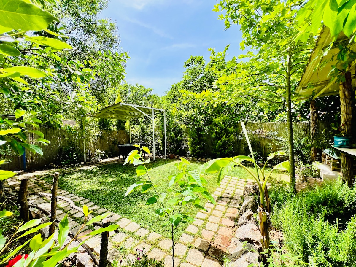 Drvena kuća u bašti od 600 m2 koja pripada samo vama. Potpuno je okružena i izolovana. Uživaćete u prirodi i miru sa bazenom, zelenilom i pogledom na more. Imaćete divan odmor u našoj kući, koji smo osmislili sa najmodernijim i najfinijim detaljima. Ohladićete se ispod našeg privatnog bazena i pergole napravljene od posebnih bambusa. Čeka vas veličanstven smeštaj sa ukupno terasom od 56 m2 i 1 potkrovljem.