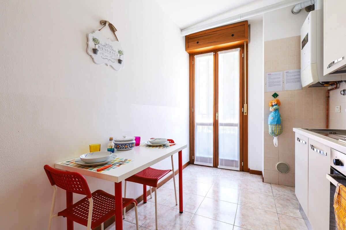 • 4 minuta vozom od izložbenog centra „Rho Fiera Milano“ (koncerti) • 13 minuta autobusom od hipodroma Snai (koncerti) • 15 minuta od centra grada (vozom) • 10 minuta od metroa (autobusom) Sigurna oblast sa privatnim obezbjeđenjem i besplatnim parkingom u cijeloj ulici. Stan otvorenog prostora od 45 m2 na 4. spratu sa liftom. Pogled na grad. Spavaća soba s bračnim krevetom na širokom osunčanom balkonu gdje možete uživati u italijanskom doručku ujutro. Hodnik sa ormarom. Kupatilo sa prozorom za opuštanje na kraju dana.