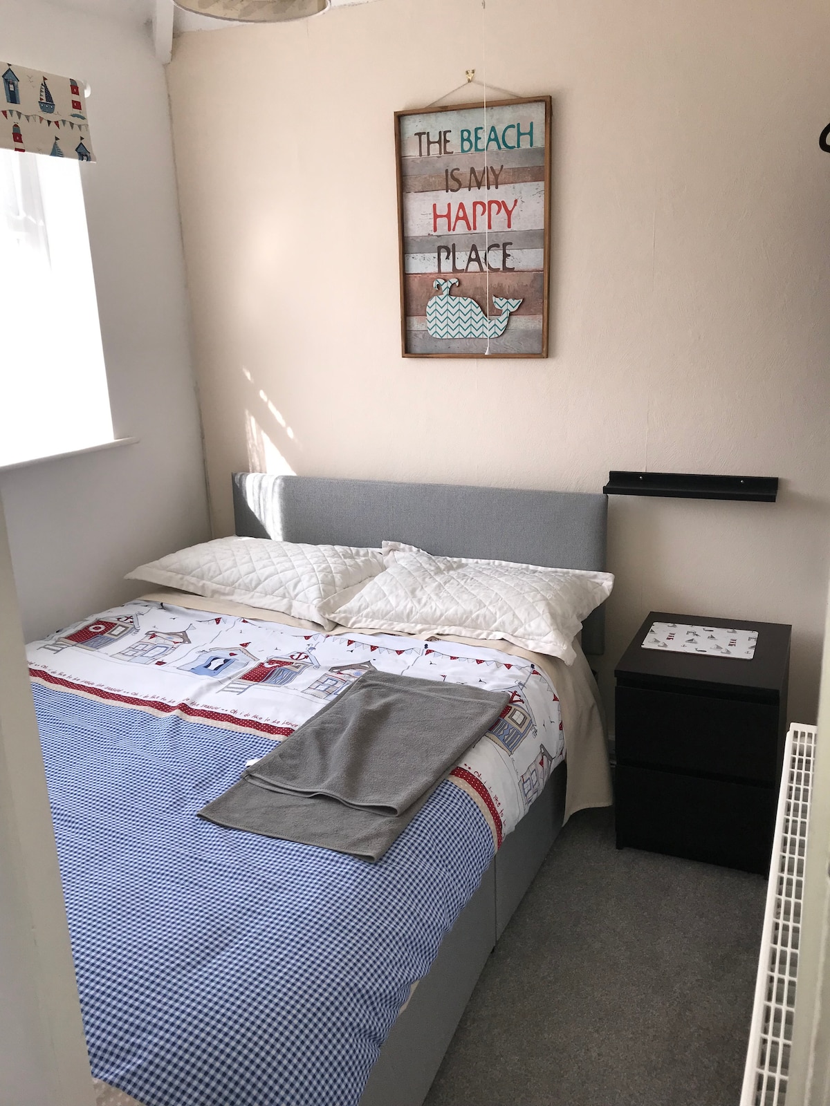 Relax and unwind by the sea in our small cosy bungalow at the end of a quiet cul-de-sac nestled within the heart of Filey, less than 1/2 mile to the award-winning beach. Ideally located with shops, bars, eateries within a short stroll. Parking for guests . Lounge with 2 x 2 seater sofas, Netflix tv. Small dining area for 4. Kitchen with washing machine. 2 double bedrooms with double beds. Tiled bathroom with shower over bath. Enclosed garden/patio to rear. Free wifi
