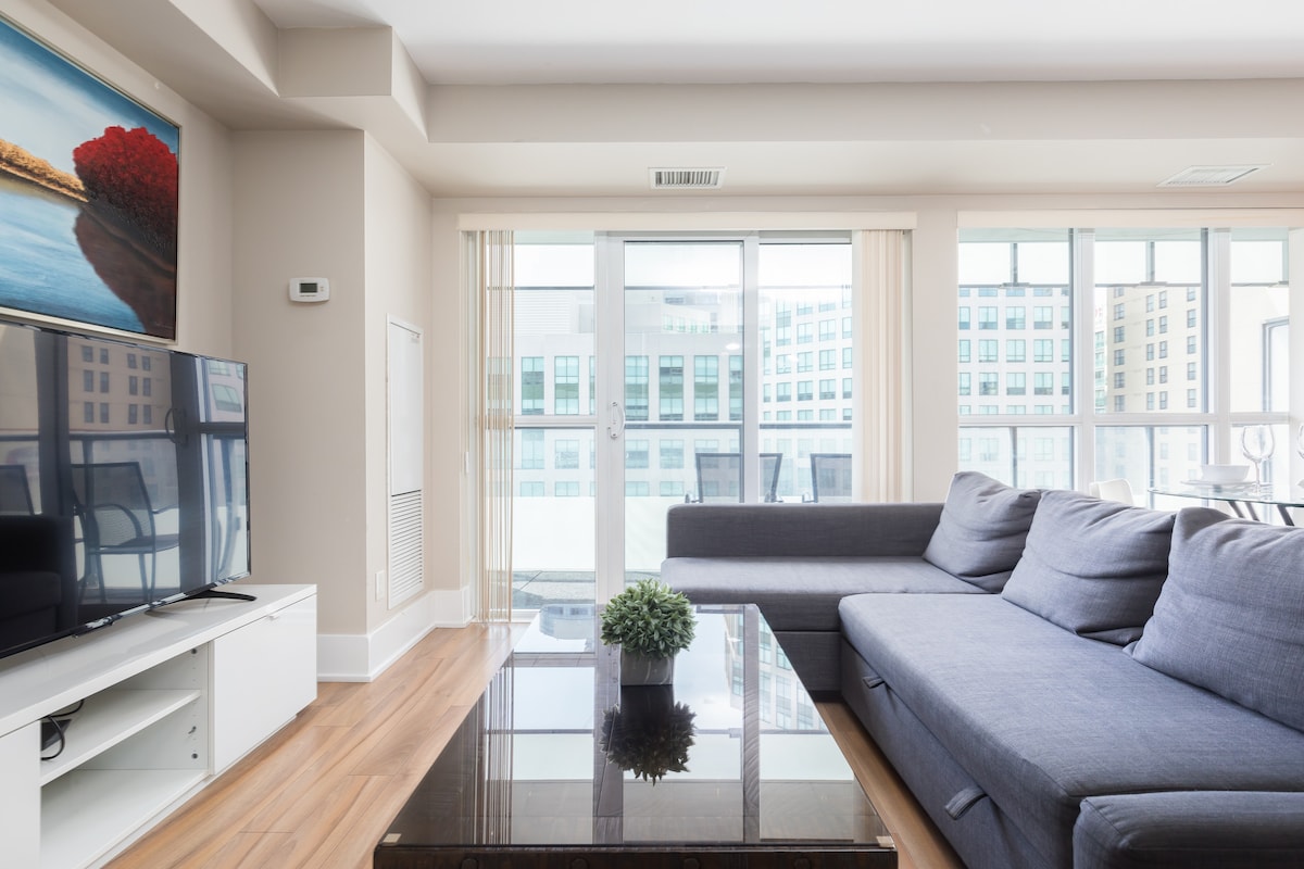 Stay in the heart of downtown Toronto in this modern one-bedroom condo just steps from the CN Tower, Rogers Centre, and the waterfront. The unit features a comfortable queen bed in the bedroom and a sofa bed in the living room, perfect for couples or small groups. Enjoy skyline views through floor-to-ceiling windows or relax on the private balcony. The condo includes a full kitchen, smart TV, high-speed Wi-Fi, and in-suite washer and dryer. Guests also have access to a gym and outdoor pool .
