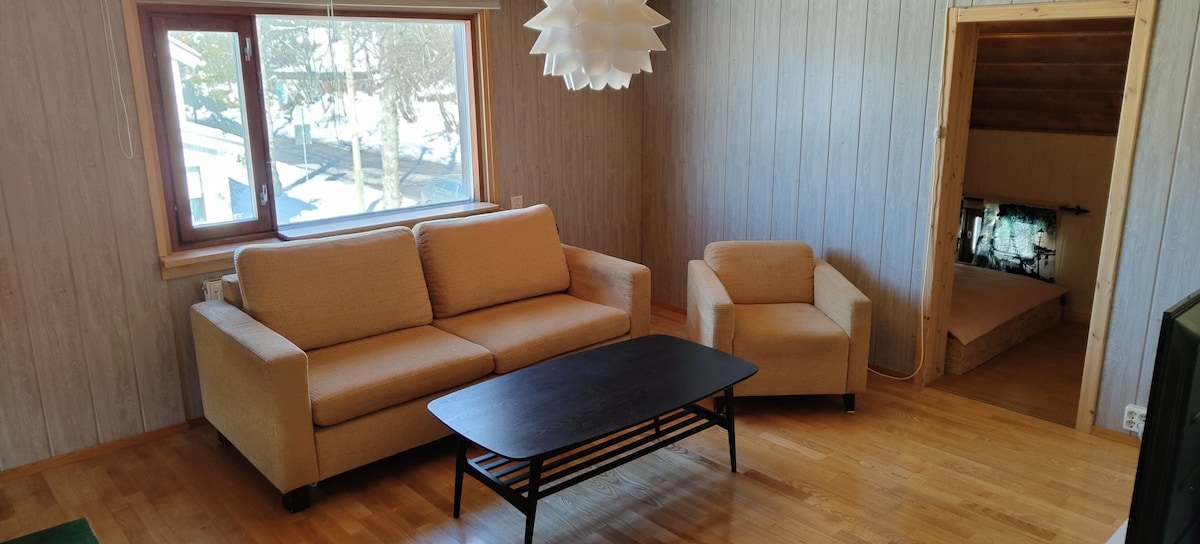 Mirno smještena Alpine brvnara, glavna kuća se nalazi na 2. spratu. U prizemlju se nalazi udoban studio od 35 m2 sa sopstvenim ulazom i prostranim parkingom za goste. Lokacija brvnare je između Levi Fela i Kätkä Fell-a, a pogled iz garsonjere je prema Kätkä Fell-u. Vaše domaćice su Tarja i Skot, a mi živimo na spratu i rado ćemo vam pomoći sa bilo čim i svim pitanjima koja imate. Tečno govorimo engleski i finski.