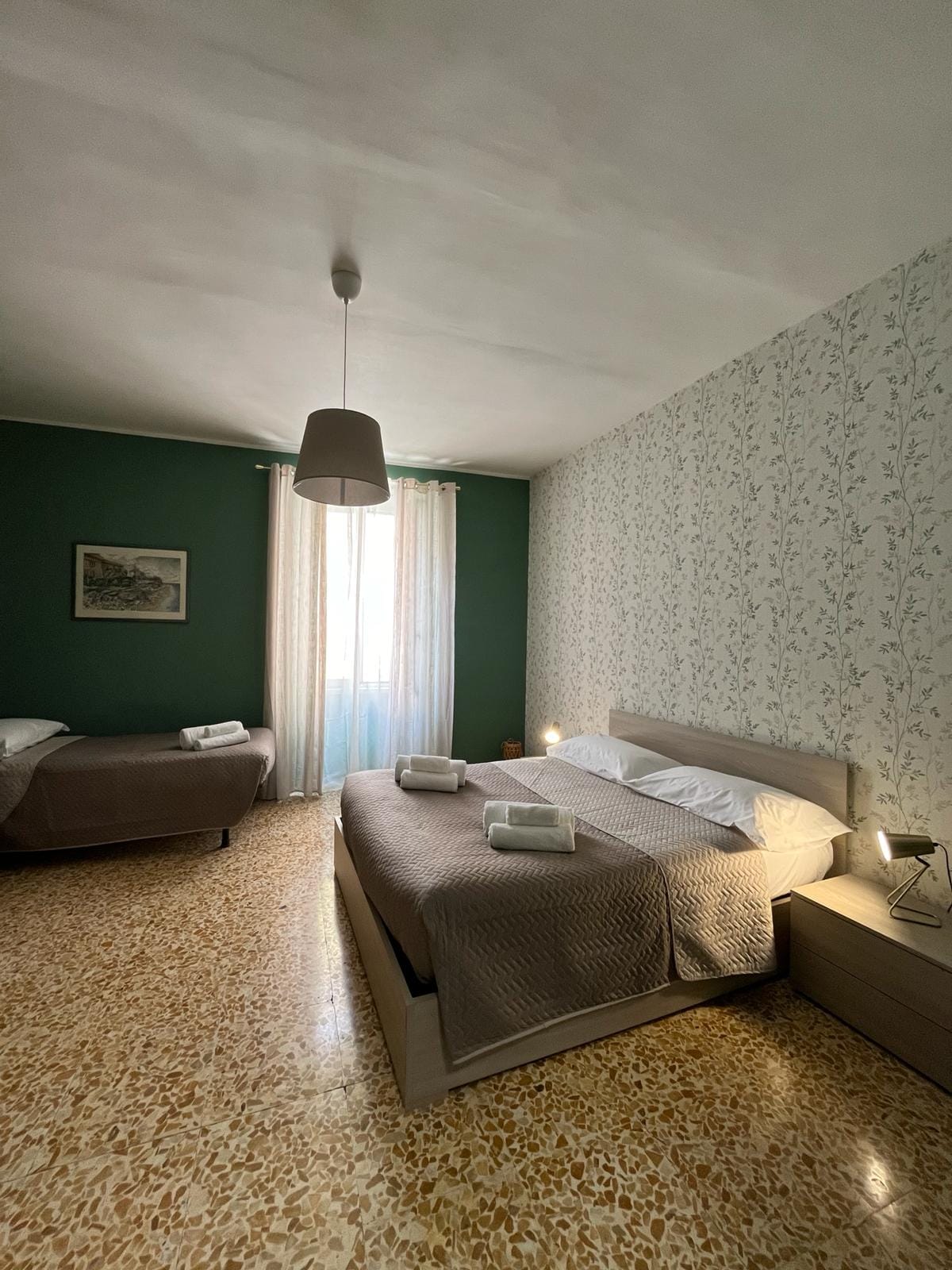 Cijeli stan 300 metara od luke i 500 metara od željezničke stanice, koji se nalazi na trećem spratu sa liftom. Sastoji se od ulaza, velike sobe sa bračnim krevetom, kao i kreveta za jednu osobu i TV-om, dnevnog boravka sa sofom na razvlačenje, pametnog TV-a i balkona sa lijepim pogledom na centralni trg, kuhinje sa indukcionom pločom za kuvanje, mikrotalasnom pećnicom, aparatom za kafu, kuvalom i frižiderom, kupatila sa tušem. Podsjećamo ljubazne goste da u svim italijanskim gradovima boravišna taksa mora biti plaćena.