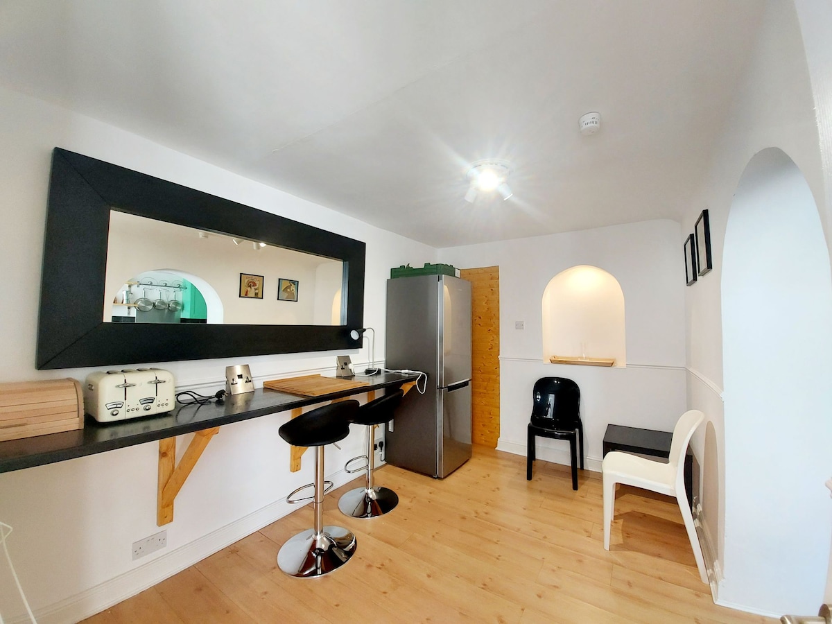 Naša seoska kućica je salon/kuhinja koja je lagana i prozračna sa francuskim vratima koja vode do terase, snabdevam mlekom, čajem, kafom, šećerom, žitaricama, kolačima, keksima, imamo mašinu za pranje veša i mašinu za sušenje veša u kuhinji, nisu za korišćenje jednog noćenja, samo za goste koji ostaju 4 dana ili duže. Na spratu, spavaća soba sa bračnim krevetom, televizor, fen za kosu, ormar, vešalice, noćni ormarići, pegla i daska za peglanje. Kupatilo i tuš kabina iznad glave, snabdevam peškire, gel za tuširanje, šampon i regenerator i toalet rolne,