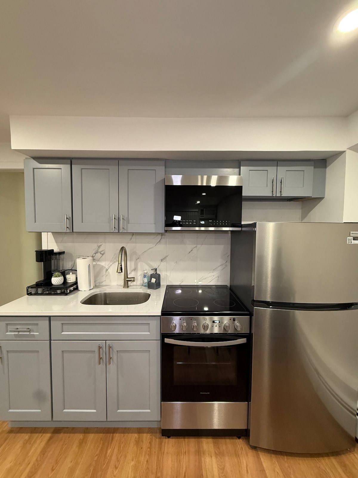 Nevjerovatna jedinica nižeg nivoa, može udobno da spava do 4 osobe sa 1 kupatilom za boravak, u blizini Belmont Parka, UBS ARENE i aerodroma JFK WI-FI, Netflix, mikrotalasna pećnica, aparat za kafu, radni sto, trpezarija, frižider, jedan bračni krevet, kauč na razvlačenje, bračni krevet i prostor za pranje veša Privatni ulaz, besplatan parking za jedan automobil na prilazu, uz rezervaciju (nije moguće parkirati na ulici nakon 2:00). Bezbjednosne kamere u objektu. Ja ću biti vaš domaćin tokom vašeg boravka, a vi ćete imati dovoljno privatnosti.