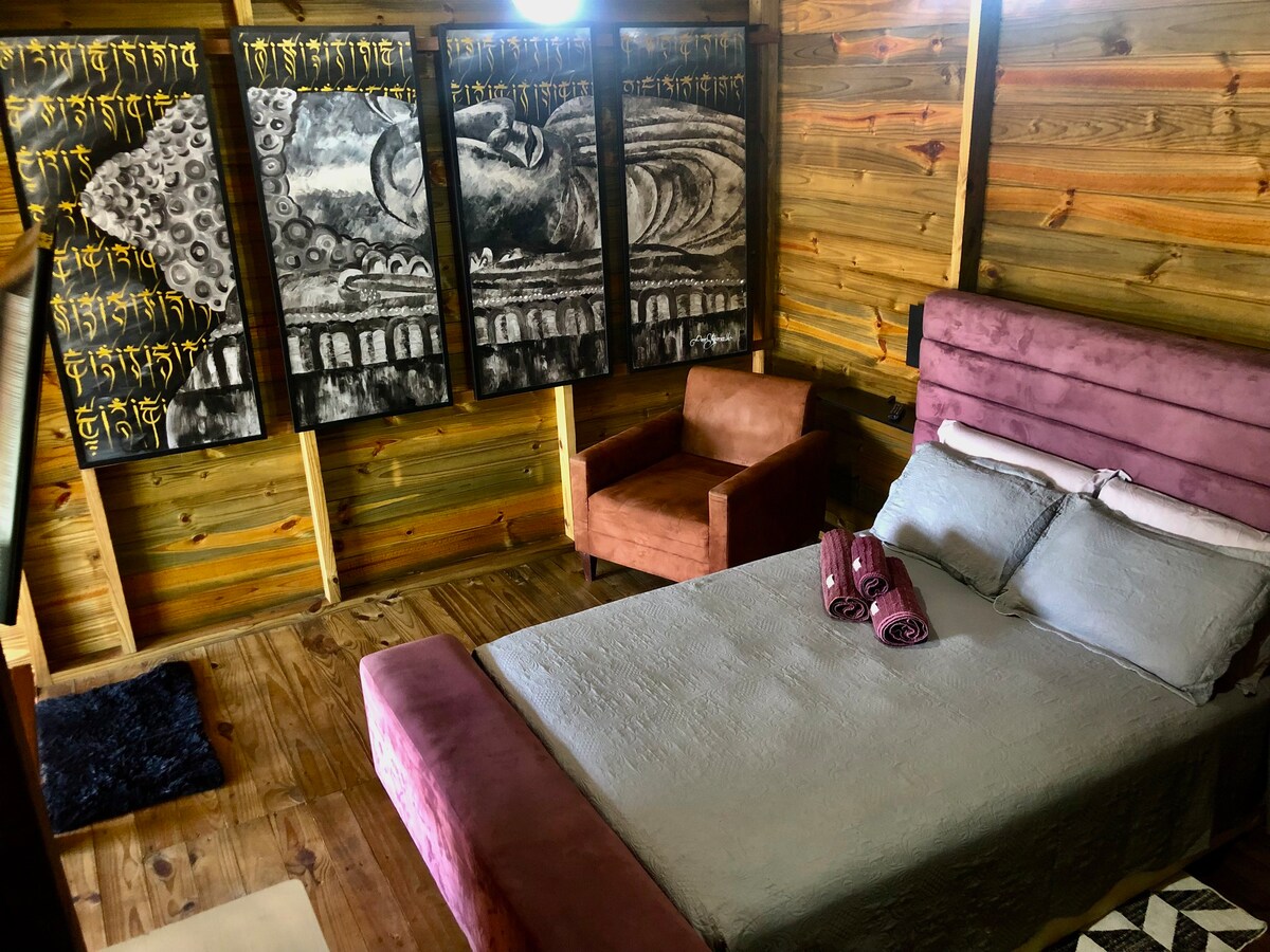 Brvnara sa direktnim i ekskluzivnim pristupom plaži, 30 koraka do pijeska. Ima panoramski pogled na zaliv Pântano do Sul, udoban, dobro uređen i sa svom udobnošću u mirnom okruženju. Udobno za 2 odrasle osobe + 2 u dnevnoj sobi (idealno za djecu). - Potpuno opremljena kuhinja, - Klima-uređaj, - posteljina za krevet i kupatilo, - Roštilj, - Ležaljke i suncobran za plažu, - Pogodno za kućne ljubimce, sa ograđenom baštom, - Privatna sjenica s pogledom na plažu, - Wi-Fi (400 MB).