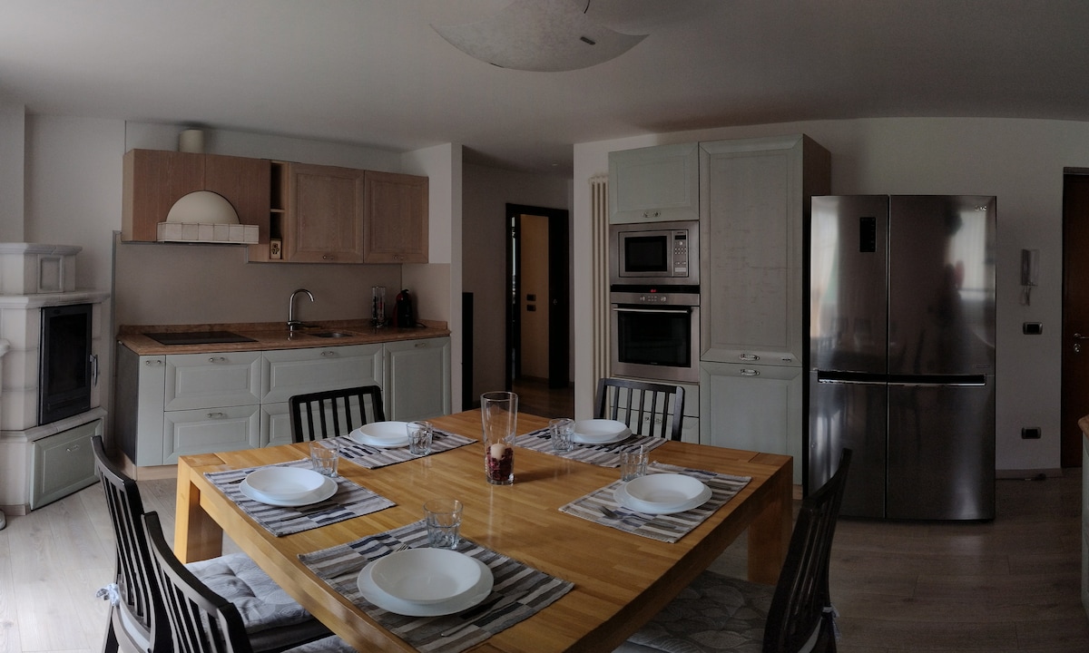 U Trentino-Alto Adižu sa očaravajućim pogledom na jezero i planine, ova planinska kuća vam omogućava da uživate u zvjezdanom nebu i doživite veoma posebnu i opuštajuću avanturu uronjenu u privatnu finsku hidromasažnu kadu na otvorenom grijanu drvetom koja omogućava jedinstven doživljaj sa suncem i snijegom. Tipična planinska kuća ima veliki stakleni prozor u dnevnom boravku koji pruža ukus veličanstvenog spoljašnjeg pogleda. P.S. Probudite se u zoru...