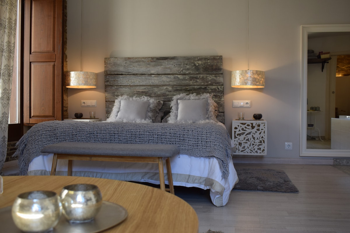Our Suites feature a living area with a fireplace, a 40" TV, and a small kitchen. In the same open-plan space, you will find a 150 cm bed and a spacious whirlpool bathtub for two. In addition, each Suite has Wi-Fi, private garden and heating, ensuring comfort at any time of the year. If you prefer not to worry about anything, in the morning we deliver a freshly prepared breakfast in a basket, featuring locally made artisanal products.