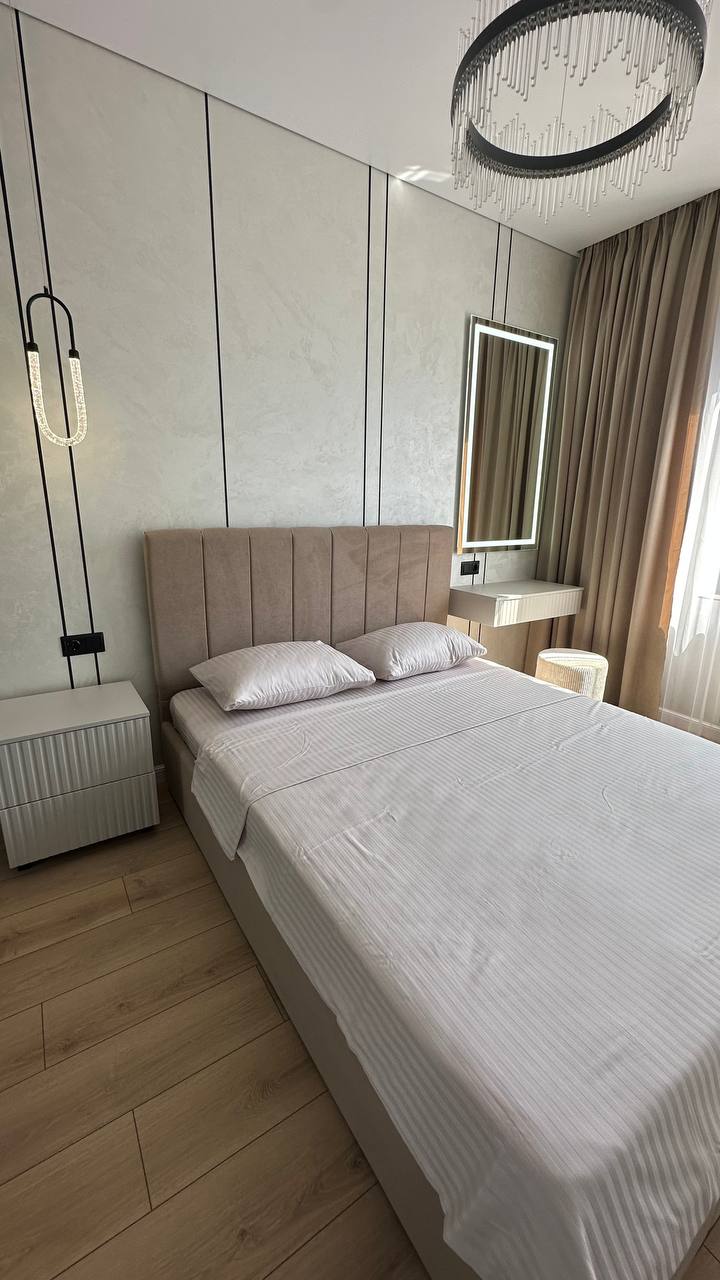 A new one-bedroom apartment in a residential complex . The apartment is located in the prestigious area of the city on the French Boulevard near the beach "Otrada", a 10 minute walk from the sea, 15 minutes from Arcadia, and 20 minutes from the center. Secured house territory, playground, elevator. Total area 60sq.m. Exclusive design project. In the living room you find a large sofa if needed convertible to double spacious, large LED TV, air conditioning, wardrobe. The bedroom has a beautiful bed, LED TV, air conditioning, wardrobe. Bright, elegant kitchen has beautiful and expensive built-in furniture and appliances, dining table. In the bathroom bath "Jacuzzi", a large basin, toilet, washing machine with a "drying". Heating, hot and cold water independently, that is, is always there. The apartment is equipped with : - water filter - coffee machine - 2 LED TV's - 2 air conditioners - bath "Jacuzzi" - washing machine with a dryer - free high speed WI-FI - microwave oven - cooking facilities - refrigerator - dishwasher - oven - ironing facilities - cooking facilities - nearby grocery store - nearby the beach - nearby many restaurants This place is ideal if you’re coming on business trip or on vacation, so if you like it and want to stay here just contact us .