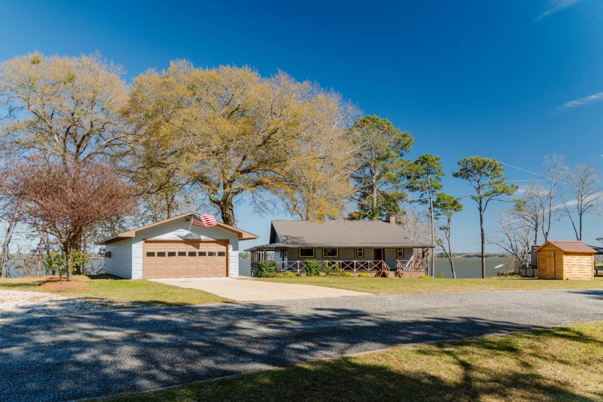 BUNGALOV NA OBRALI jezera Eufaula, na strani Džordžije. Samo 3 sata od Atlante, 2 sata do Talahasija na Floridi. Privatno natkriveno pristanište sa vezom za čamce, svetlima i strujom, priključkom za kamp-prikolicu, šumovitim privatnim prostorom, fantastičnim pogledom na zalazak sunca, ribom sa pristaništa! Nije litica niti zajednički prostor. Pokrivena veranda sa stolicama za ljuljanje sa pogledom na jezero, velika nadstrešnica za auto i mnogo parkinga/dvorišta za kampere, prikolice za čamce, šatore, veliko ognjište sa stolicama, 2 roštilja na gas sa gorionicima, kućni ljubimci su dobrodošli! Obližnji državni park za obroke, golf, iznajmljivanje čamaca, pešačenje itd.