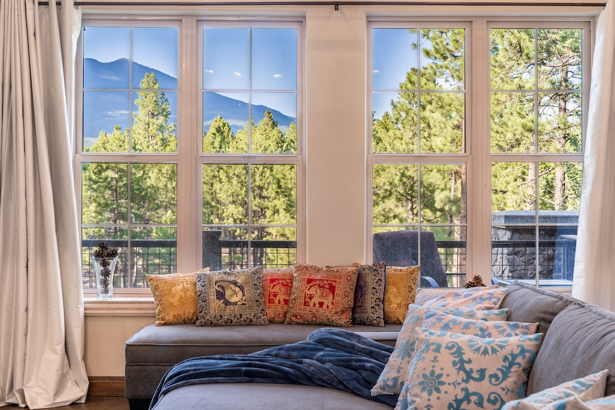 Dopašće vam se naša udobna seoska kuća. Pogled na vrhove San Franciska je nenadmašan. 7 milja od centra Flagstafa, 1/2 milje od Snoubl Rd i sat vremena od Velikog kanjona i Sedone. Biciklizam, planinarenje i zimski sportovi su vam na ulaznim vratima. Dom je potpuno opremljen za kreiranje obroka, zabavu i uživanje u veličanstvenom okruženju. Ne morate nigde da idete. Već ste tu. Ponesite svoju hranu, a mi ćemo vam obezbijediti ostalo. Sa tamnim nebom ovde možete videti Mlečni put i šire.