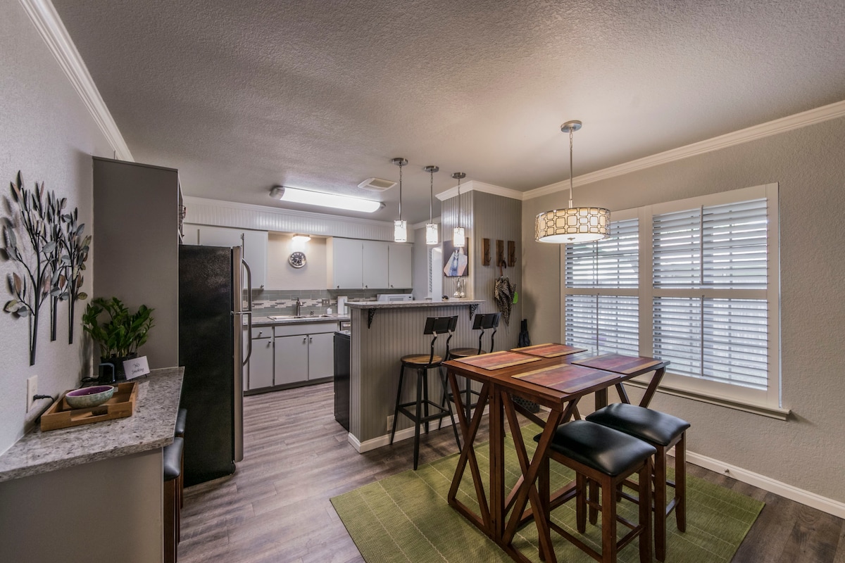 Lokacija, lokacija, lokacija! Stan se nalazi u srcu kulturne četvrti, a do Udaljenost od peške: Diki 's Arena, nekoliko barova/restorana (uključujući naše omiljene, Taco Heads!), Will Rodgers, UNT Health and Science Center, Kimbell i muzeji moderne umjetnosti i Botaničke bašte. Kratka vožnja Uberom/taksijem: West 7th, TCU stadion, centar grada, područje magnolije. Puna kuhinja sa granitnim pultovima, mašinom za pranje/sušenje veša, ormarom, ograđena u dvorištu sa mnogo hlada.