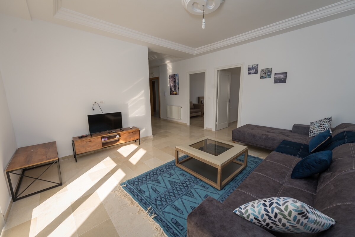 Dovedite cijelu porodicu u ovaj odličan apartman sa tri spavaće sobe, kuhinjom , kupatilom i tušem. Savršen prostor za porodične putnike ili putnike s više prijatelja. Ima TV sa kablovskom televizijom , Wi-Fi , bezbjednosnu kameru sa spoljne strane zgrade, sistem centralnog grijanja u stanu i opremljen je klima-uređajem. Vrlo je mirno i tiho , oko 10 do 15 minuta vožnje do glavnog grada i 5 minuta do industrije El Mghira zone . Pošaljite mi poruku za dugoročni boravak!! mjesto sa mnogo prostora za zabavu.