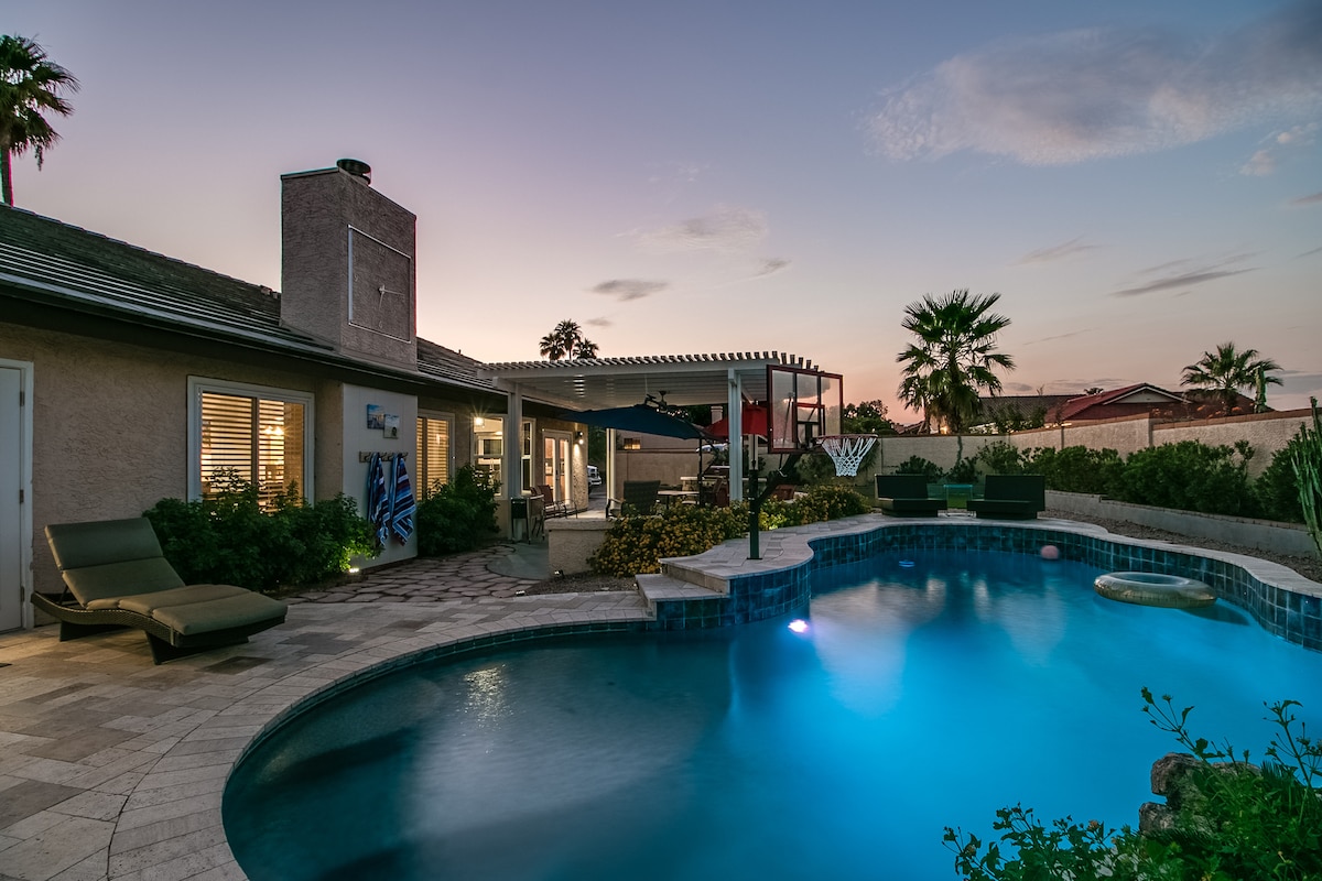 Dobro došli u The Perch - vaš elegantan smještaj prikladan za porodice s pogledom na Red Rock i Four Peaks. Uživajte u privatnom bazenu, igraonici, namjenskom radnom prostoru i uređenim dizajnerskim detaljima. Samo nekoliko minuta od Fountain Parka, planinarenja, golfa, tubinga i jezera Saguaro. Savršeno za parove, porodice ili osobe koje rade na daljinu. Uključen je brzi Wi-Fi, parking u garaži i nebo uz zalazak sunca. Rezervišite smještaj u pustinji već danas! Imajte na umu da bazen nije zagrejan.