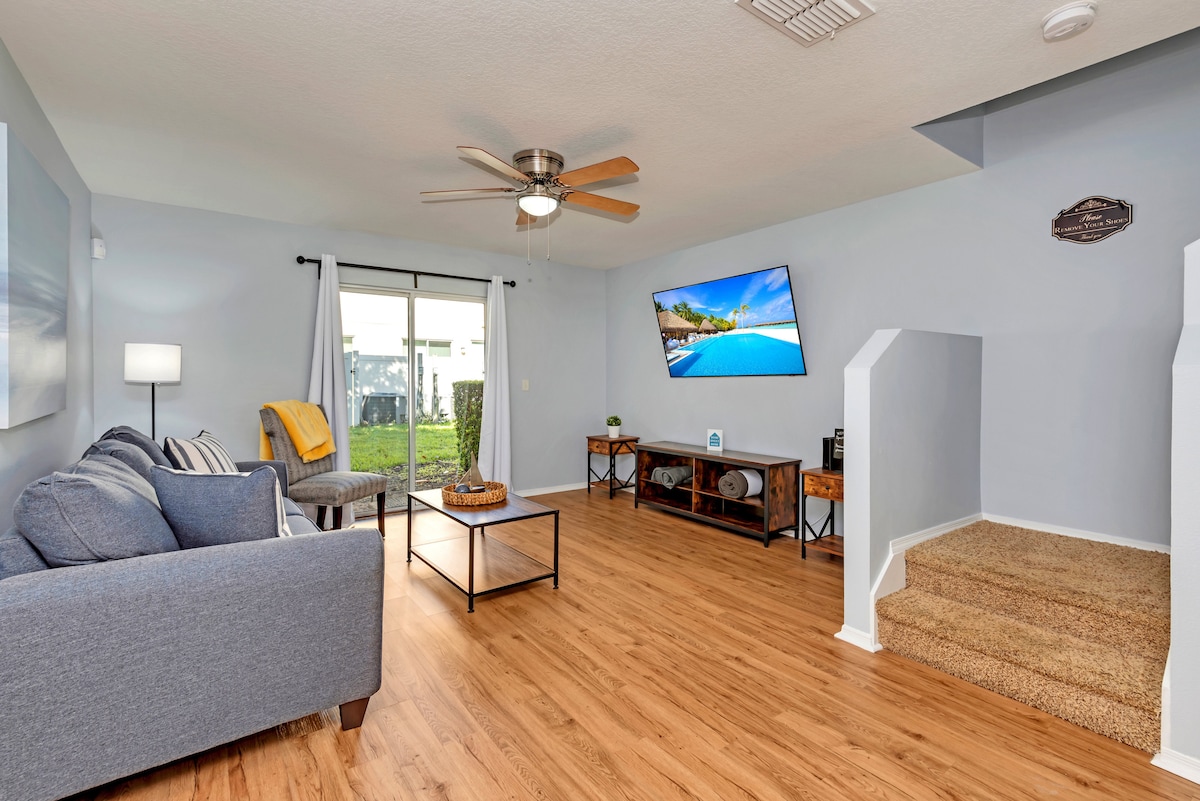 Pobjegnite u ovaj prelijepi kondominijum, savršeno smješten u blizini Diznijevih parkova! Veliki dnevni boravak, kompletna kuhinja i trpezarija, dizajniran je za opuštanje i praktičnost. Dvije spavaće sobe uključuju sobu s Mikijevom tematikom, s bračnim krevetom i dva kreveta na sprat, a u drugoj sobi je spavaća soba s bračnim krevetom i dva kupatila. Uživajte u natkrivenom dvorištu kako biste proveli kvalitetno vrijeme s porodicom i prijateljima. Najbolje od svega, imaćete besplatan pristup dva fantastična vodena parka u zajednici sa restoranima u sklopu objekta i barovima - čeka vas savršen odmor!
