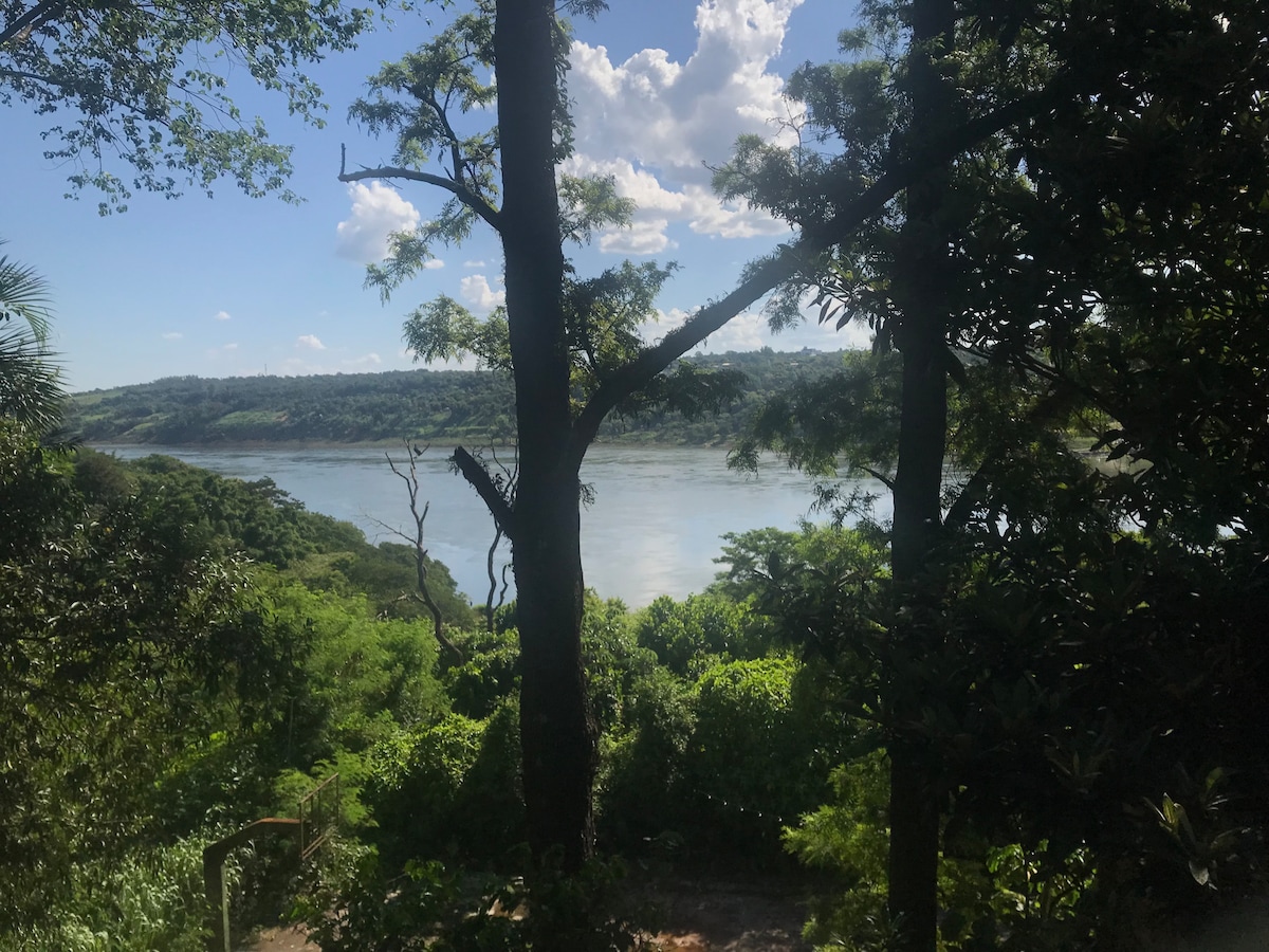 Kompletna kuća, dobro provjetrena i dobro smještena, u vrlo sigurnoj četvrti Foz do iguaçu ispred ŠUME MACACOS. vrlo mirna, u blizini apoteka, supermarketa i autobuske stanice i jednostavan pristup korišćenju App automobila. Jednostavan pristup centru grada i Paragvaju Prostor za 3 automobila, roštilj, internet, TV, opremljena kuhinja, utičnice od 110 V i 220 . Kućni ljubimci su dozvoljeni. Dvije spavaće sobe imaju klima-uređaj Obs: vazduh nema tehnologiju grijanja. samo hladan sistem