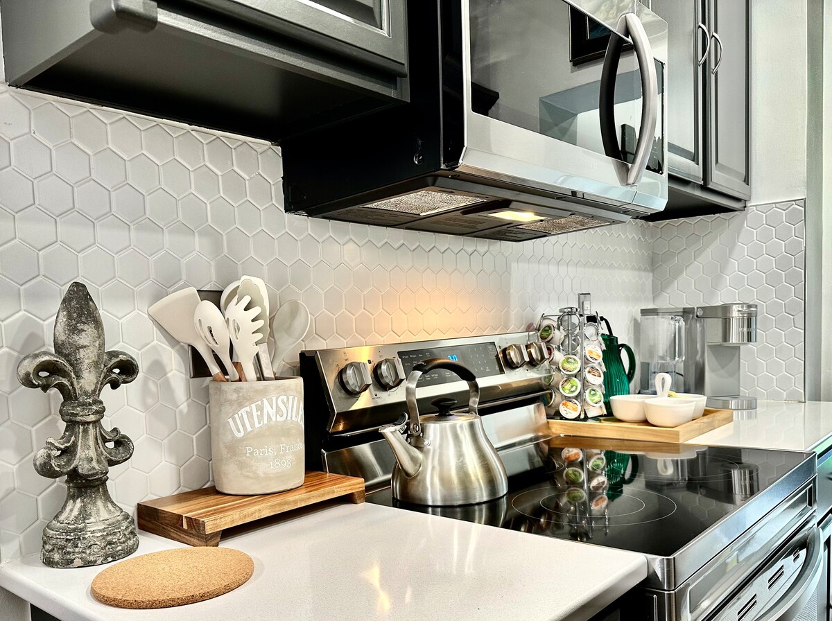 ⭐ Izdvojeno na Konde Nast najboljoj na listi Kolambusa, maj 2025. ✔️ Jedinstveni dom iz 1930-ih sa elementima španske arhitekture preporoda ✔️ Dvije spavaće sobe na glavnom spratu (minimalne stepenice); jedan bračni krevet (sa zasebnom kupaonicom) i jedan bračni krevet ✔️ Lično odabrana umjetnička djela, koja je vlasnik prikupio i ručno izradio ✔️ Privatni prilaz i parking izvan ulice; punjenje električnih vozila sa Tesla adapterom ✔️ Central Clintonville location; walk to Weiland's grocery in 10 mins, Starbucks (High St.) in 11 mins, and more restaurants in 15 mins