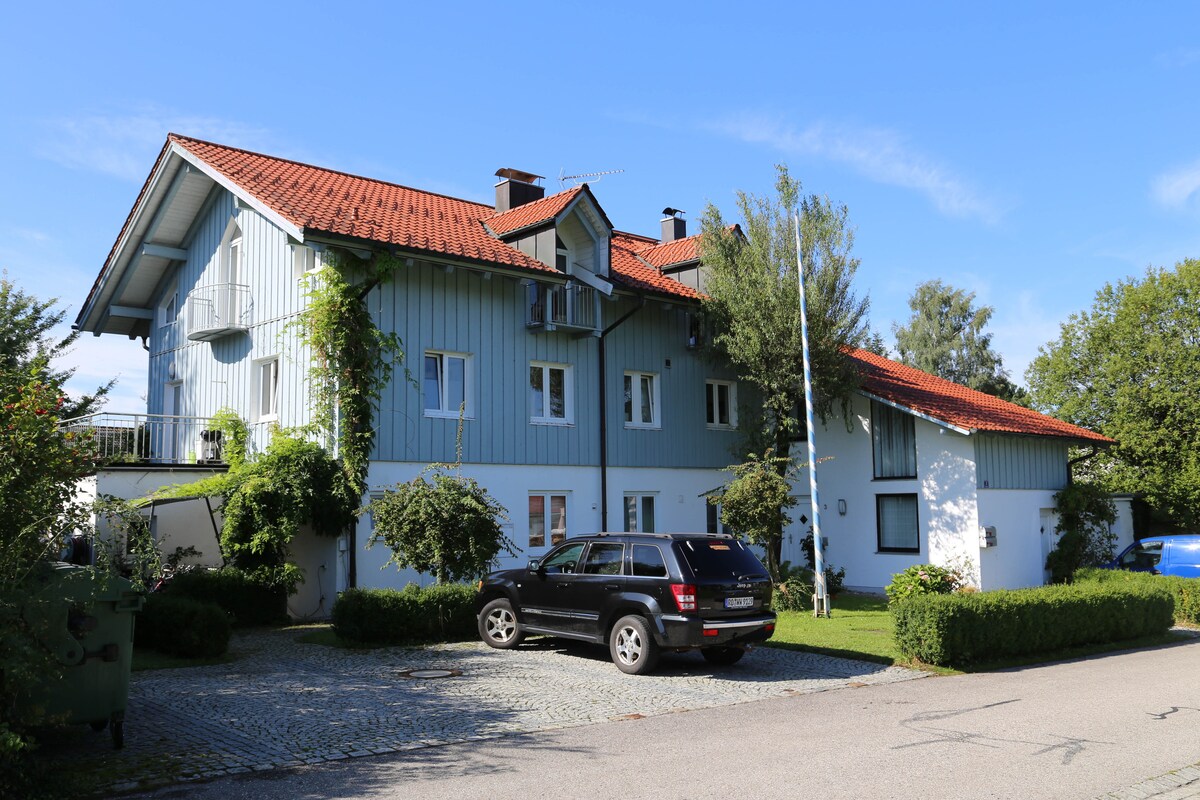 Dobro došli u prelepi i novouređeni stan na skrovitoj lokaciji sa pogledom na planine i đakuzi na otvorenom. Iznad sela Aßling sa supermarketima, restoranima, benzinskom stanicom, pekarom. Do železničke stanice je udaljeno 5 minuta hoda, a odatle možete da idete vozom do Minhena za oko 21 minut, a do Rozenhajma za 15 minuta, a dalje do Salcburga. (tj. možete da stignete i bez automobila. Ako možemo da ga sredimo, rado ćemo pokupiti vas i vaše kofere sa stanice).