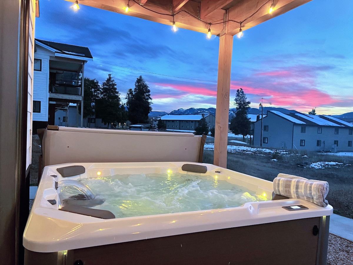 Dobro došli u svoj planinski dom! Opustite se u privatnoj hidromasažnoj kadi za 6 osoba na zadnjem dvorištu ili popijte jutarnju kafu sa terase dok uživate u pogledu na planine. Samo nekoliko minuta hoda do linije za prevoz, budite u zimskom parku u tren oka! Nakon dana provedenog na padinama, opustite se ispred kamina ili vanjskog ognjišta. Primarna spavaća soba ima privatno kupatilo, dok prostrana gostinjska soba ima kadu + tuš-kabinu. Imate električno vozilo? Besplatno naplatite u grijanoj garaži!