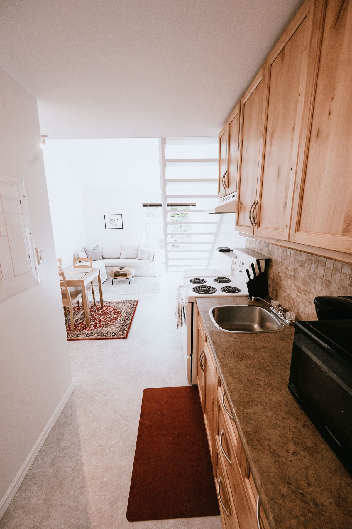 Dvospratni stan od 550 kvadratnih stopa, visoki prozori, grede, kamin na gas, kuhinja i vešernica! Uključuje bračni krevet (širine 150–179 cm) od livenog gvožđa, kao i bračni krevet na izvlačenje (širine 150–179 cm) na tavanu i dupli krevet na razvlačenje! Samostojeća kada, vrata od drveta, patinirani podovi i terasa. Restoran u evropskom stilu u sklopu objekta i centralni Fort Langli! Istorijski grad na obali poznat po zlatnoj groznici, rodno mesto Britanske Kolumbije, nudi šetnju do urbanih i prirodnih sadržaja, bistroa, muzeja, parkova, sezonske plaže, vožnje čamcem i jahanja. 45–60 minuta vožnje do Vankuvera! Skriveni „dragulj“!