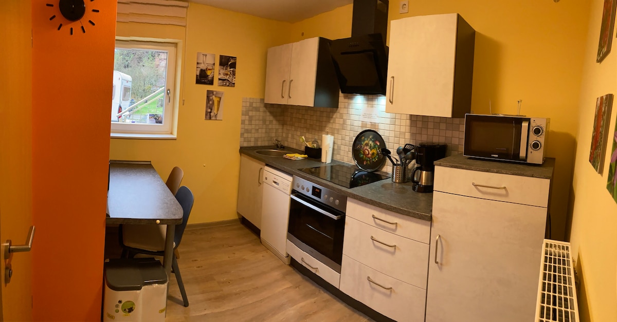Dobro došli u naš udobni, tihi stan koji se nalazi u mirnom stambenom području! Prirodna lokacija u Bliesgauu ne ostavlja ništa poželjno, posebno za planinare i bajkere. St. Ingbert, Saarbrücken i Homburg su dostupni za 20 minuta. Do aerodroma Saarbrücken možete stići za 7 minuta, a do Saarlandthermea za 15 minuta. Prodavnice i pekare su u šetnji. Možete parkirati ispred vrata. Vrijeme dolaska/odlaska je određeno, ali fleksibilno.