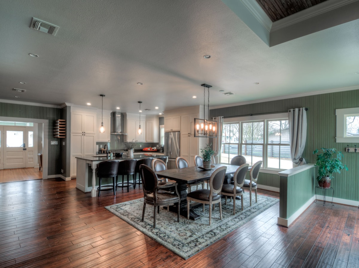 The Austin St. Bungalow is a recently remodeled 2000 m ² home located in the heart of the Historic District. Ova privatna kuća sa 3 spavaće sobe i 2 kupatila udaljena je samo nekoliko koraka od centra Frederiksburga. Ovaj smještaj je praktično raspoređen i prostran, što je savršeno za grupe, prijatelje, porodice i djevojačke večeri i ima prelijepo uređeno prednje i zadnje dvorište sa nevjerovatnim ognjištem. Savršeno za duže boravke sa mašinom za pranje i sušenje veša i kompletnom kuhinjom!