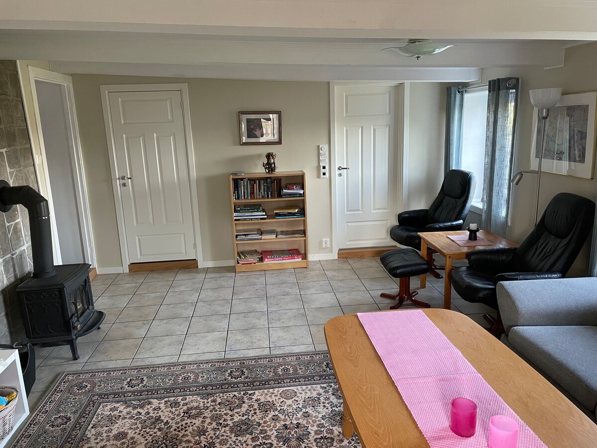 Prostran, bez stepenica, dobro opremljen stan, 3,4 km od centra grada Vćrstetorvet/Fredrikstad. Za porodice/studente/parove/preduzeća. 2 spavaće sobe sa bračnim krevetima + 1 dodatna soba sa krevetom za jednu osobu. Dnevni boravak sa kaminom, velika kuhinja, veliko kupatilo sa tušem/kadom. Optički internet, pametni TV, DIV aplikacije i teliabox. Terasa. Posteljina/peškiri su uključeni. Autobus do centra grada, Vćrstetorvet, željeznička stanica, Østsiden, linija 5. Prostor za 4-5 odraslih i 2 dece u 2 bračna kreveta i krevet za jednu osobu/krevet na razvlačenje. 1 krevetac pored kreveta, 1 putni krevetić 1,20 po narudžbini.
