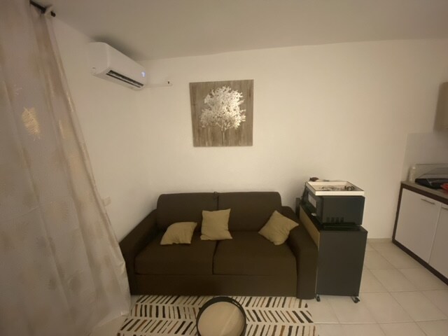 T2 od 40 M2 potpuno namješten, opremljen i klimatizovan, nalazi se u privatnoj i sigurnoj rezidenciji. Wi-Fi / KANAL+ / NETFLIX pristup internetu, privatna terasa OD 20 M2 na spratu, posteljina, usluga čišćenja. Terasa bez stepenica, bazen i bar/roštilj/rerna za picu su zajedničke prostorije u rezidenciji kojoj imate pristup. Po dogovoru, cijene za duže boravke. Planirano je renoviranje terase, drvo mnogo radi u tropskoj atmosferi...