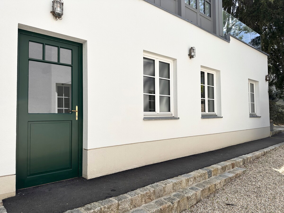 Smeštaj se nalazi na donjem spratu prelepe novoizgrađene porodične kuće. Stan je potpuno nov, u najboljem stanju. Sve je uključeno: opremljena kuhinja, spavaća soba, dnevna soba, Wi-Fi, TV, privatno parking mesto. Tramvajska stanica je udaljena samo 3 minuta od nas. Za 25-30 minuta možete stići do centra. Mirna, zelena lokacija u blizini nekoliko znamenitosti (Schönbrunn, Hermessvilla, Lainzer Tiergarten...). Radujemo se vašem dolasku.