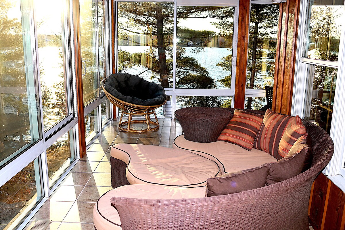 Udobna seoska kuća na obali jezera sa veličanstvenim pogledom na 1 hektar zemlje. Uživajte u predivnim izlascima sunca dok pijuckate kafu. Igrajte džinovsko povezivanje četiri. Pecite sljezove kolačiće pored kamina. Uživajte u miru i spokoju. Jezero je odlično za ribolov, vožnju kajakom i kanuom. 15 minuta od sadržaja. 30 minuta od atrakcija, uključujući farme alpaka, 1000 ostrva, vinarije okruga Princa Edvarda, stari centar Kingstona, farmu kraljice lavande, nacionalno istorijsko mjesto Fort Henri i posmatranje zvijezda u kamenim mlinovima.