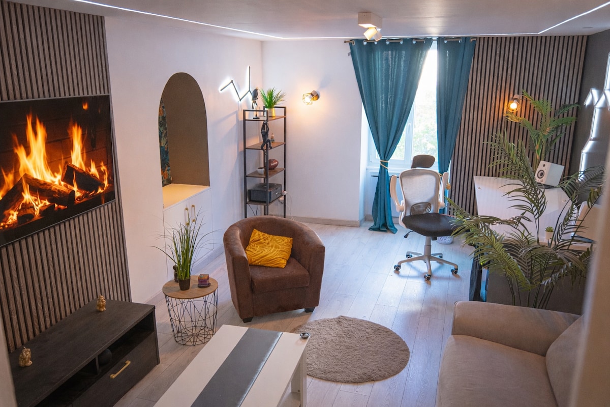 Opustite se u ovom mirnom, elegantnom smještaju smještenom u srcu brda okrenutog ka Šalonu u selu Voiteur. U potpunosti izgrađena našim malim rukama, Le Chaleureux je kuća s drvenim okvirom dizajnirana u periodu od nekoliko mjeseci kako bi vam ponudila dom koji je isti kao i mi, u kojem ćete se osjećati kao kod kuće i uživati u našem prelijepom regionu u potpunosti. 🏠 Naši drugi smještaji : >Le Kokos . Gîtes Chez Morgane & Thomas > Domaine GUIET