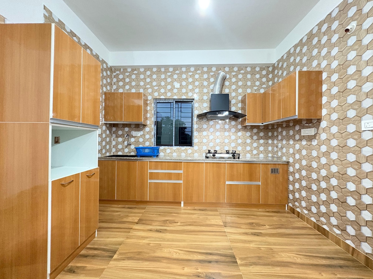 Dobro došli u naš udoban i pažljivo uređen trosobni apartman, savršen za porodice, grupe ili osobe koje rade na daljinu! Svaka spavaća soba ima udoban bračni krevet, plafonski ventilator, ormar sa ormarićem i sopstvenu jedinstvenu atmosferu Soba 1: Soba za zabavu sa TV-om Soba 2: Jedina soba sa prostorom za rad sa klima-uređajem i knjigama o pričama Soba 3: Prostor za rekreaciju za opuštanje ili opuštanje Uživajte u funkcionalnoj kuhinji, brzom Wi-Fi-ju, zajedničkom prostoru s indijskim i zapadnim toaletima, odvojenom kupatilu s gejzirom i besplatnom parkingu!