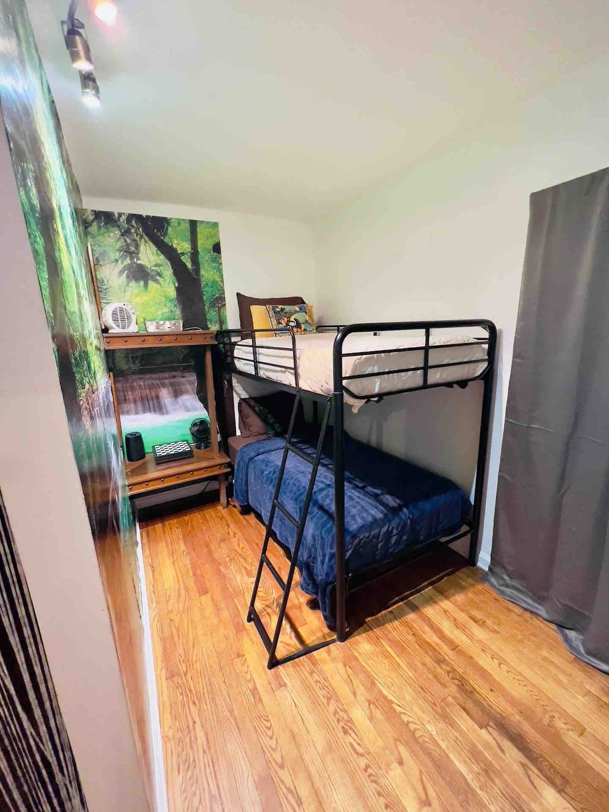 Slatka i udobna Jedna spavaća soba unutar GotoAtl Guesthousea, ima sopstvenu bravu na vratima i šifru na dan prijave. Ova spavaća soba se nalazi u prizemlju i ima jedan krevet na sprat, u sobi za 2 osobe (za odrasle ili dete) Kuća za goste nudi odlične zajedničke sadržaje sa mnoštvom zabavnih i kul karakteristika. Sa ovom rezervacijom ćete dobiti ovu spavaću sobu sa krevetima na sprat i pristupom dva zajednička kupatila i svim drugim zajedničkim prostorijama.