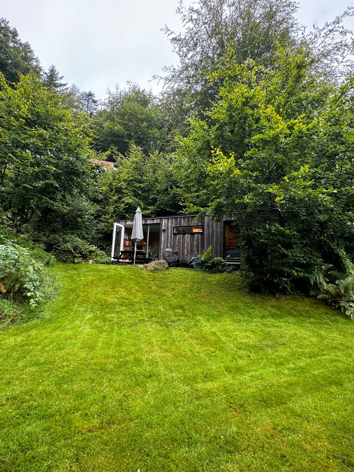 Udobna mala brvnara odmah pored zaštićene šume (staze iz bašte) i blizu grada i pješčane plaže. Privatni otvoreni prostor sa terasom, travnjakom, ognjištem i roštiljem. Unutra: bračni krevet, kutak za ručavanje, radni sto i 2 fotelje. Kuhinja: 2 ringle, kombinovana rerna, aparat za kafu, frižider/zamrzivač. Kupatilo sa toplim tušem. Na ivici mirnog stambenog područja. Arhus ~45 minuta automobilom. Besplatan parking, samostalna prijava i brz Wi-Fi.