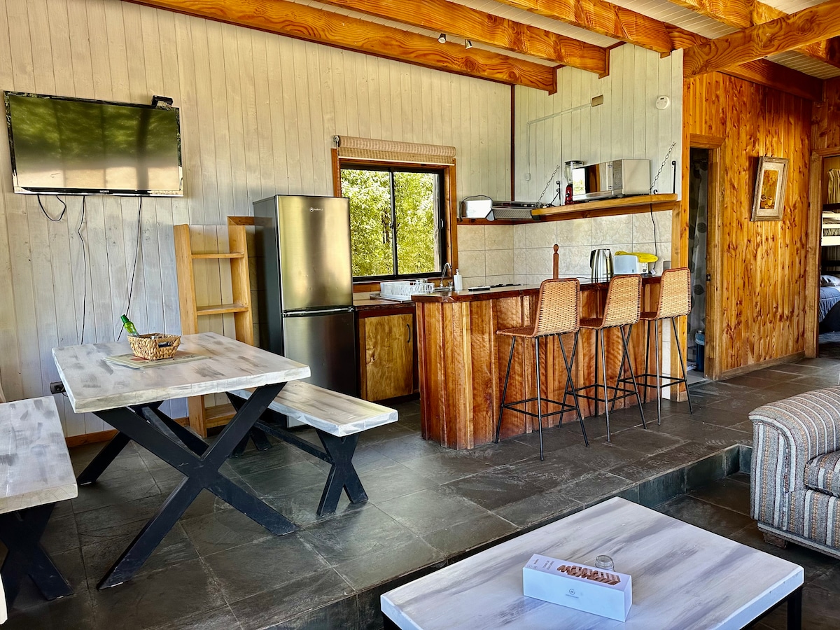Brvnara na selu za dvije osobe, vrlo blizu grada Futrono. Nalazi se u mirnom i bezbednom okruženju, sa drvećem i malim potokom. Idealno za odmor, bez TV-a ili Wi-Fi mreže. Ima spavaću sobu na drugom spratu sa bračnim krevetom. Na terasi možete da imate roštilj i uživate u pjevanju ptica i zvuku potočne vode. Udaljeno 10 km od Coique i 20 km od Huequecura, najbližih plaža u okolini.
