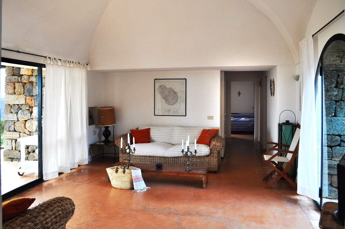 Dammuso SA pogledom NA Kala Tramontanu I PRIVATNI PEŠAČKI PRISTUP MORU (oko 150 metara) Idealno za ljude koji traže skrovito i ekskluzivno mesto. Stambeni kompleks koji je dizajnirao svetski poznati katalonski arhitekta Oskar Tuskets, rođak vlasnika, poznat ostrvljanima kao „Španci“, nalazi se u bazenu zaštićenom dominirajućim vetrovima u privilegovanom položaju.